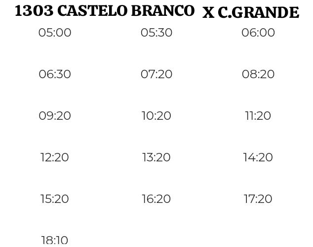 Talvez você já saiba, mas seu amigo ou ente querido, não. Por isso, estamos compartilhando os horários do nosso 1303 – Castelo Branco x C Brande e gostaríamos que você COMPARTILHASSE também.